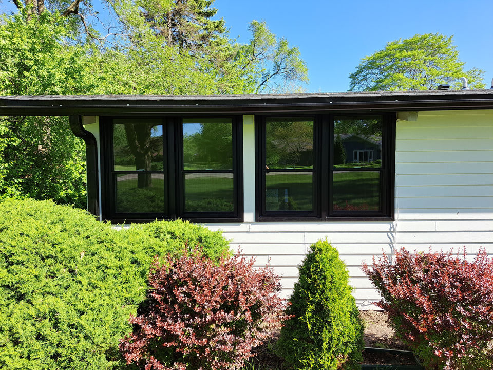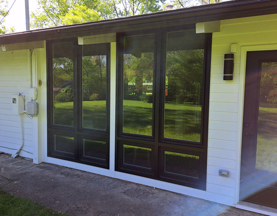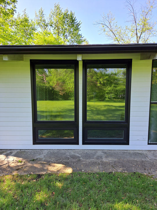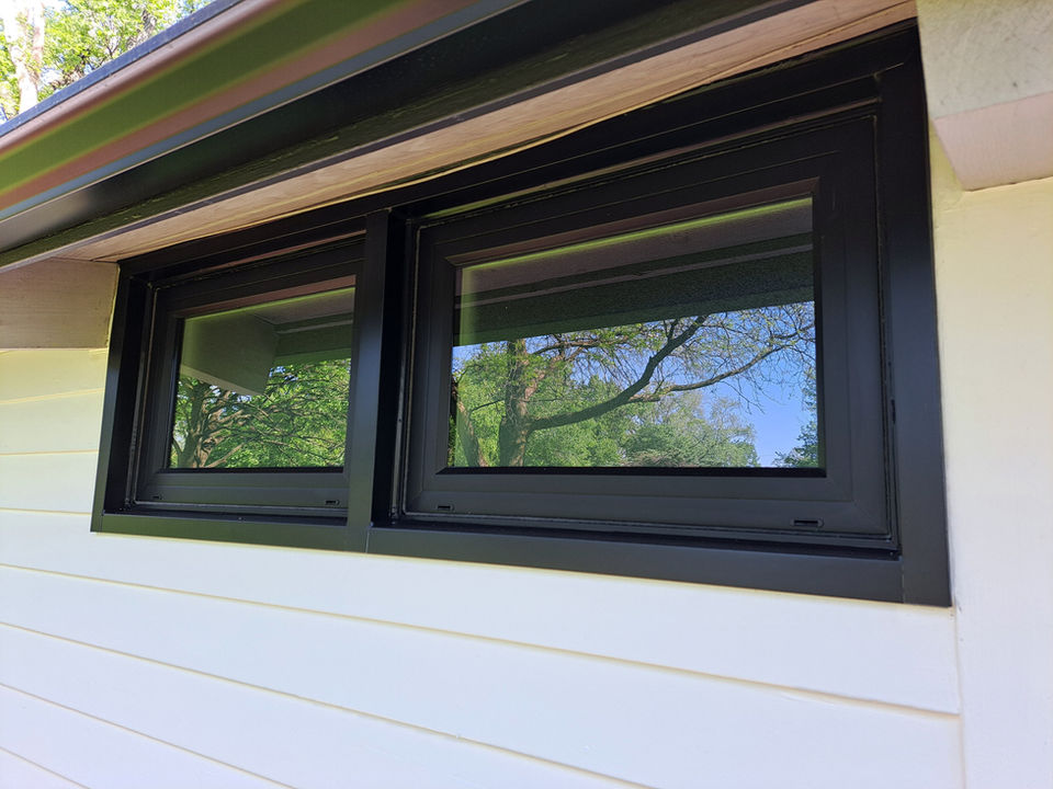Wow, mid century modern is all the rage and this one nails it! Feels like you're in California with huge windows, soaring exposed beam ceiling, and tons of natural light.The only issue is that's the windows didn't open. But, after two days of hard work and craftsmanship they now are all operable. Black outside and white inside. The California house owners needed windows to be installed before they moved in. We had 30 days from contract to installation.